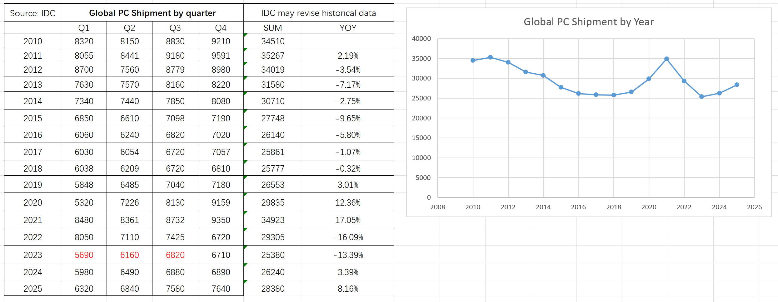 数据库 | 全球个人电脑PC出货量表与点评(季度更新)