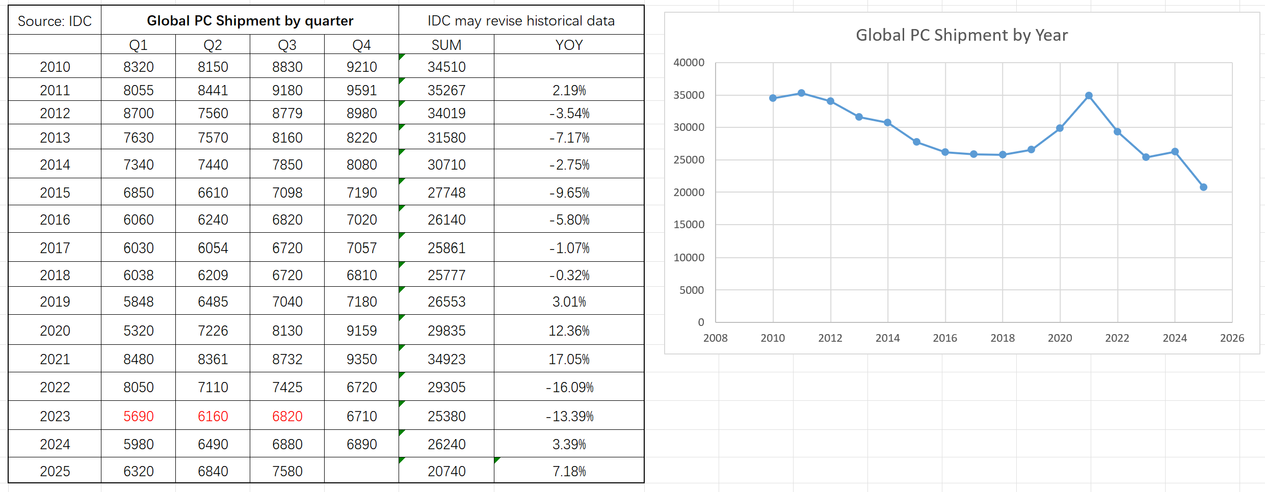 数据库 | 全球个人电脑PC出货量表与点评(季度更新)