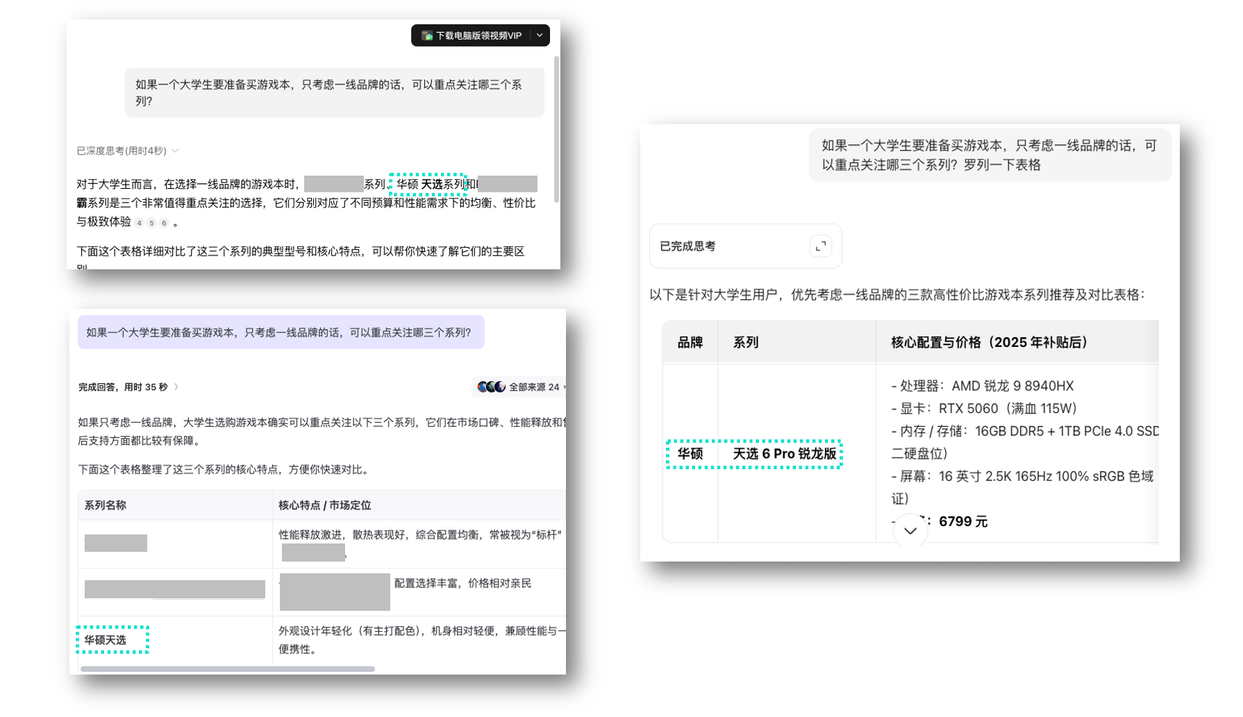 其实可以看到,这三台游戏本都是优秀的天选 6 Pro 新模具,主要的差别是在 CPU 处理器配置和 GPU 显卡配置。