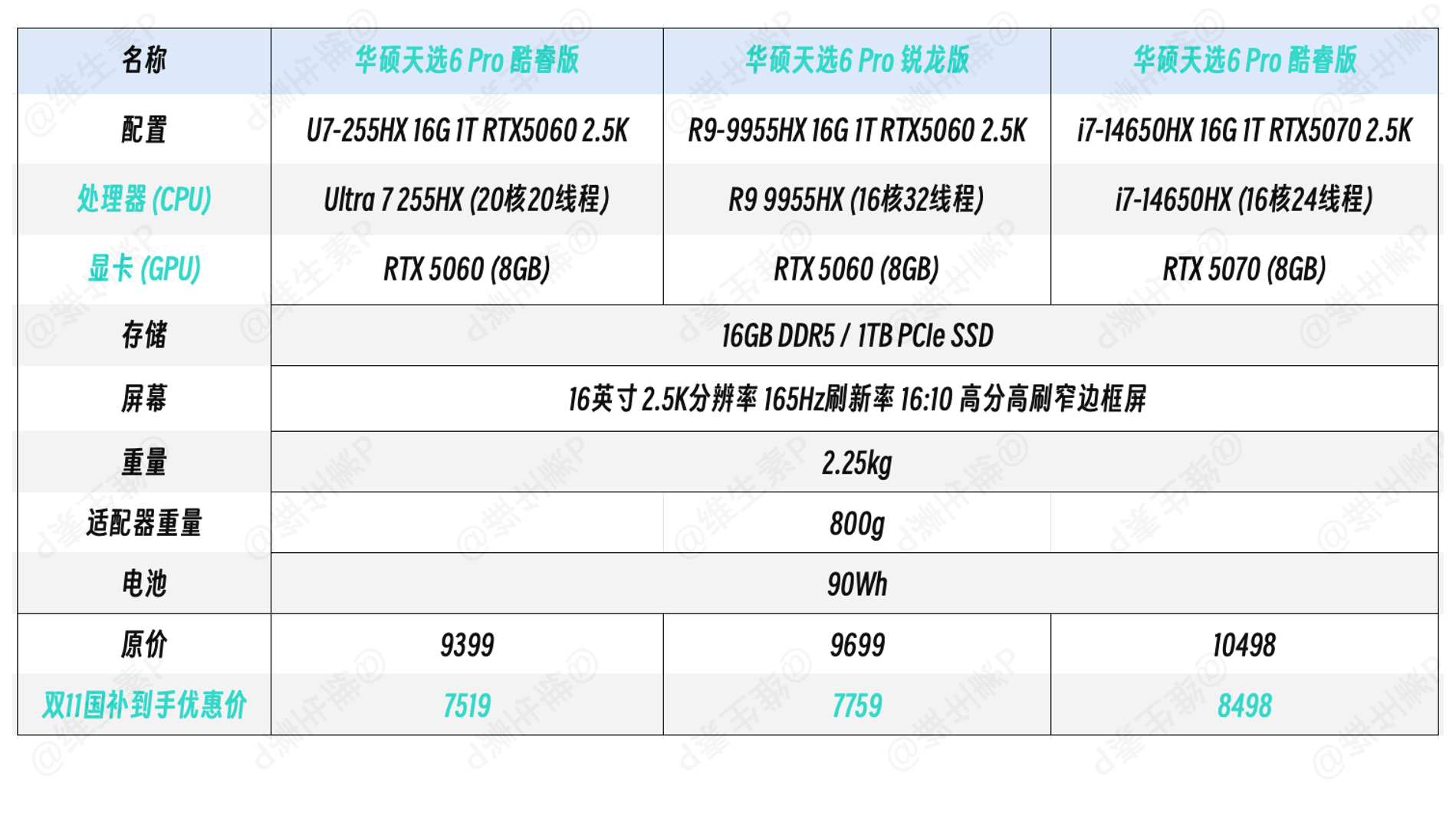 那么,如果说天选 6 Pro 非常符合你的胃口,想要趁着双十一的优惠,偶买噶买她买她的话,这三款最后大促降价折扣的配置里,又应该要怎么选呢?