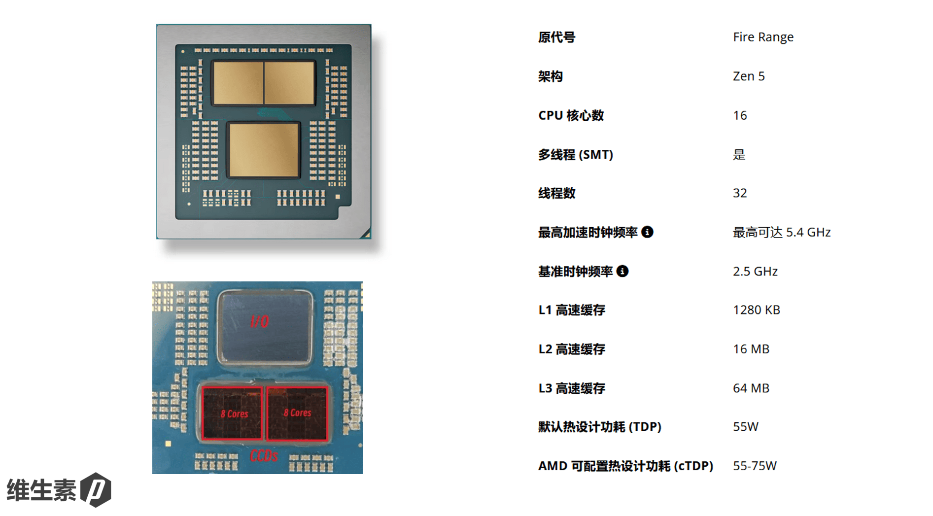 它采用最新的 Zen5 架构,台积电 4nm 工艺,沿用了桌面端的 CCD 设计,由两个 CCD 和独立的 IO Die 组合而成。