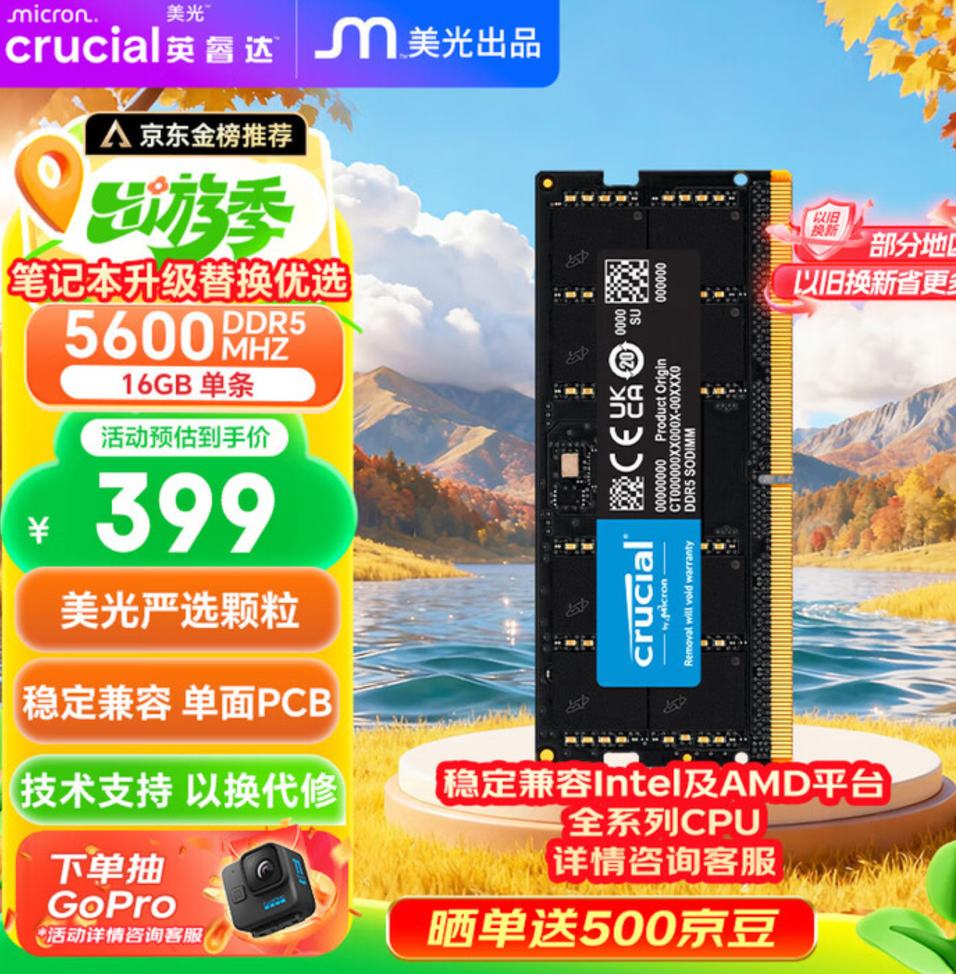 如果说近期有购买固态硬盘、内存条的想法,我建议各位还是趁着双十一入手,不要再做等等党了。例如英睿达笔记本电脑内存条16G,售价399,可以点击此处购买。