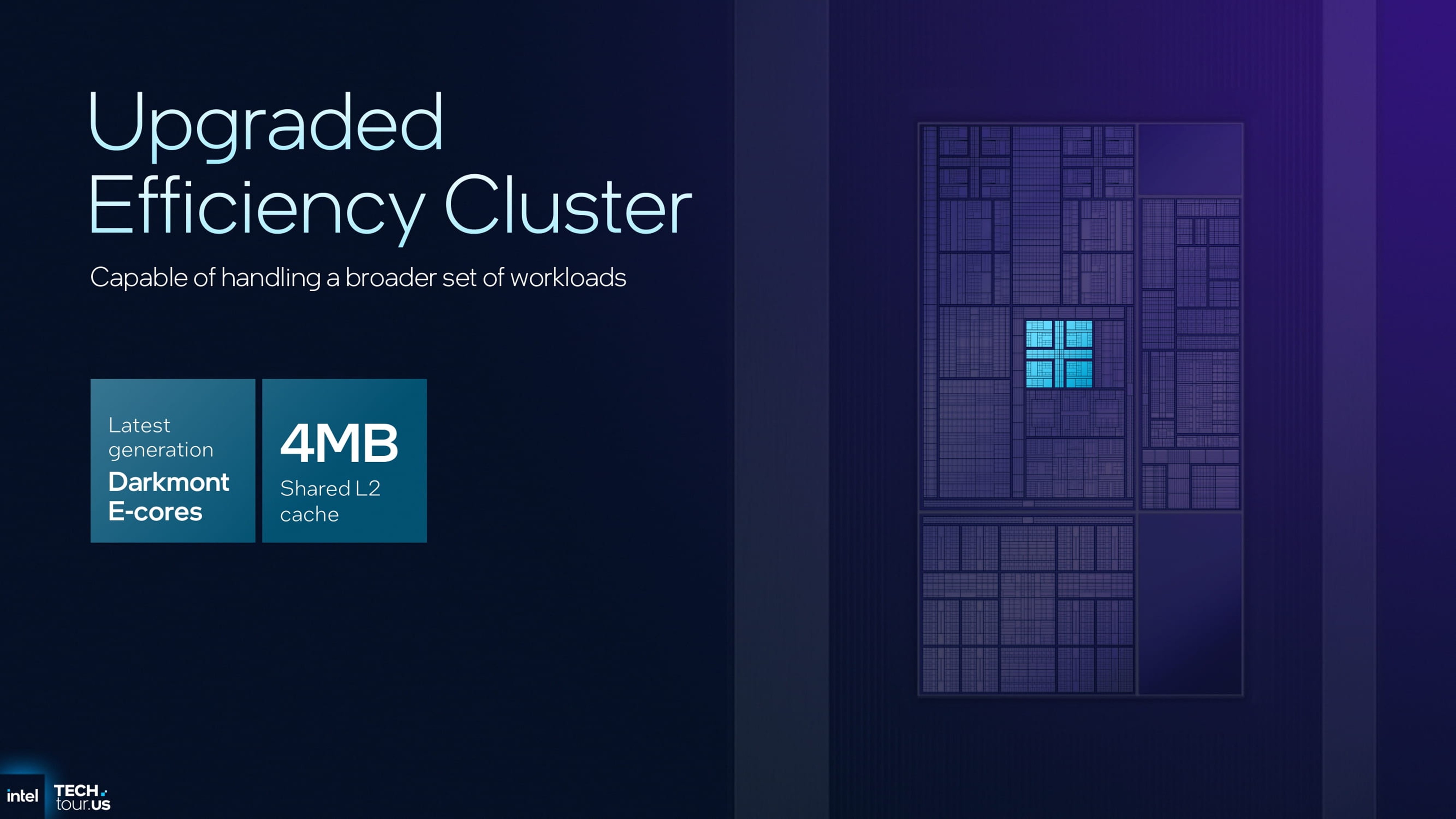其次,低功耗岛(Low-Power Island) 设计同样得到保留。这部分由独立的 LP E-core 组成,专门用于处理后台或简单任务。在低功耗场景下,系统会优先将任务分配到低功耗岛,从而维持平台整体的能效表现。