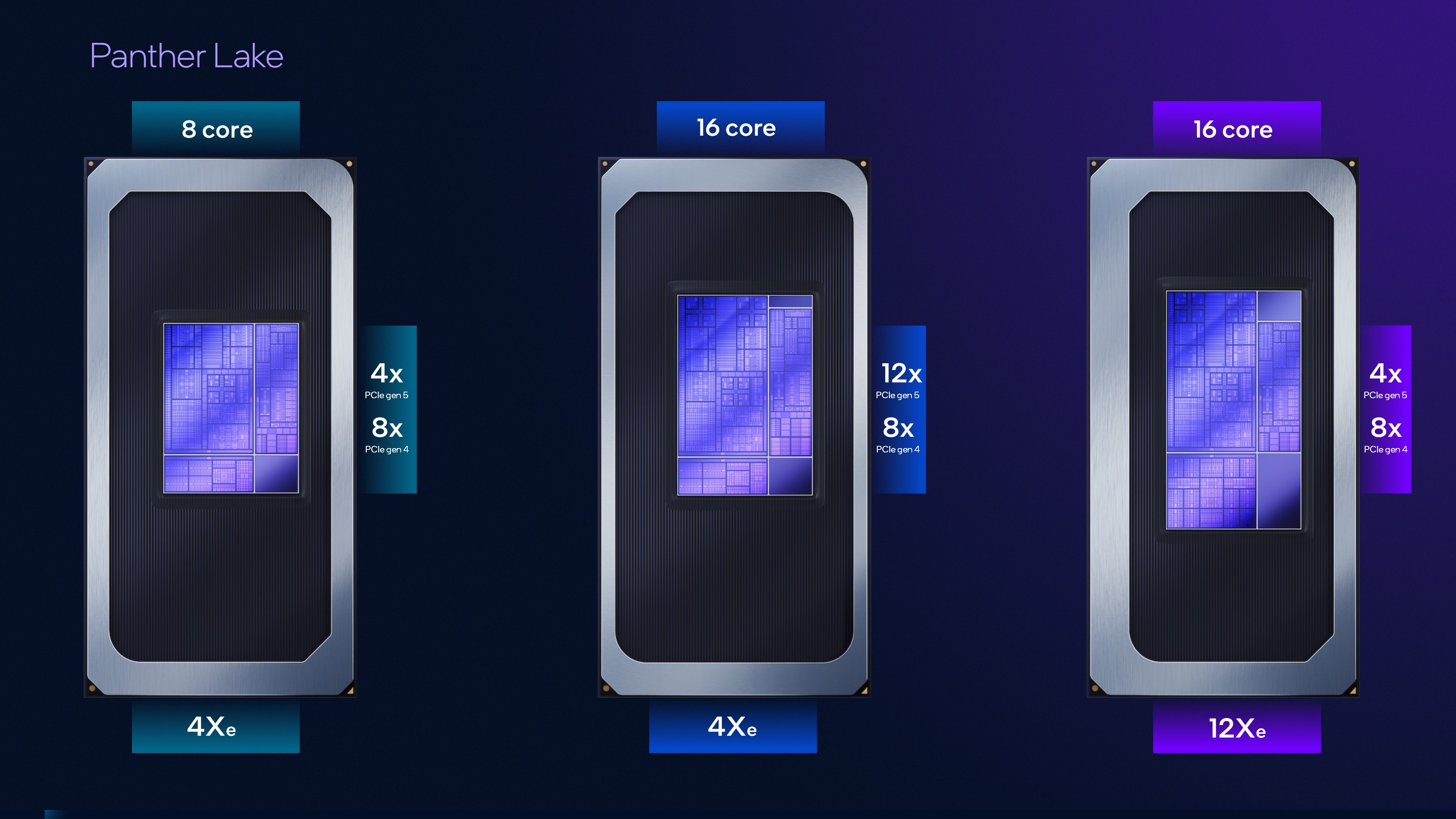 Panther Lake 系列延续了从能效到性能的分层布局,共分为三种核心配置: