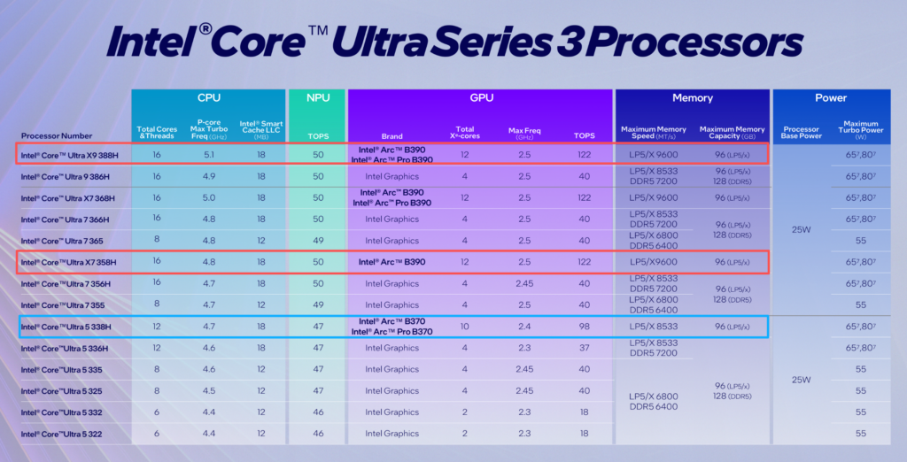今年的拳头产品,真正值得购买的SKU是酷睿Ultra X9 388H、酷睿Ultra X7 358H和酷睿Ultra 5 338H。