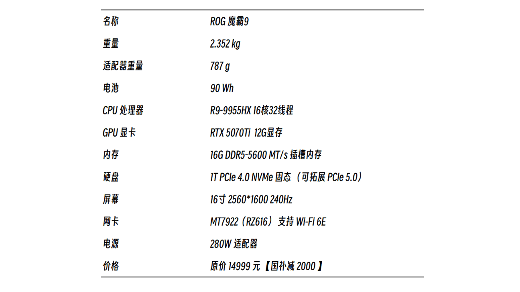 - ROG魔霸9 – R9 9955HX3D 16G 1T RTX5070Ti 2.5K 240Hz