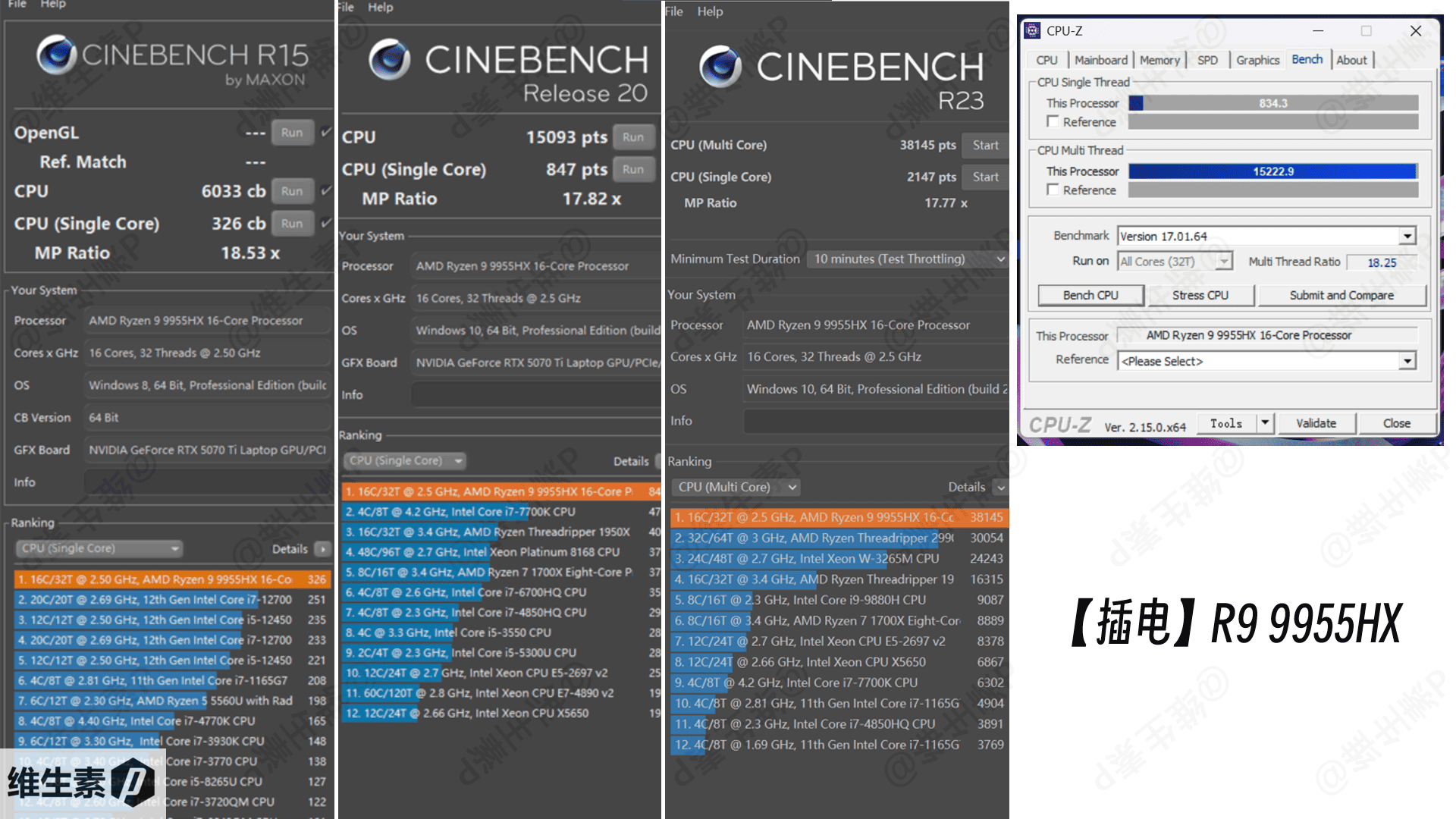 上一代的 7945HX 已经是分数榜的顶流,现在 9955HX 更加是一骑绝尘,跑分恐怖如斯。