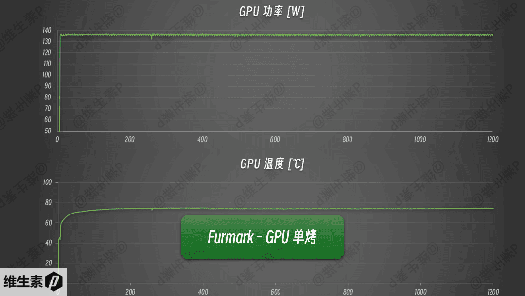 再来看看控制台开启增强模式下 GPU 显卡的情况,使用 Furmark 2560*1440 分辨率,开启 4倍 MSAA 抗锯齿,独显的单烤结果如下图,在135W – 136W 轻微波动 ,温度也稳定在 75 度上下,核心频率在 2.5 – 3.1 GHz 波动。