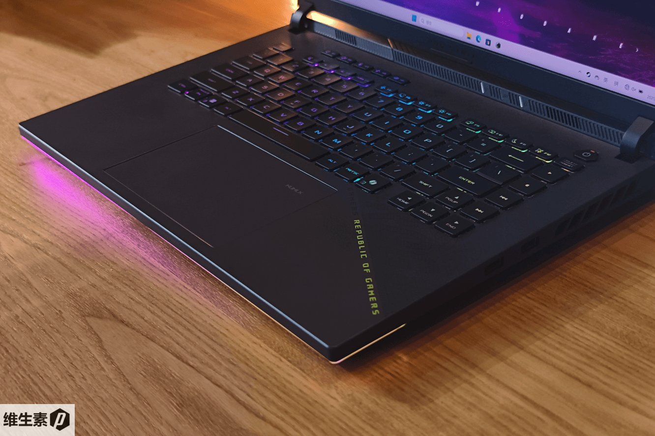 电竞游戏本和核心就是在于优秀的电竞体验,ROG 魔霸 9 系列外观设计,质感品味方面,是绝对足够出彩的。单键 RGB,U型底盘灯,结合一套 ROG 外设神光同步,沉浸感拉满。