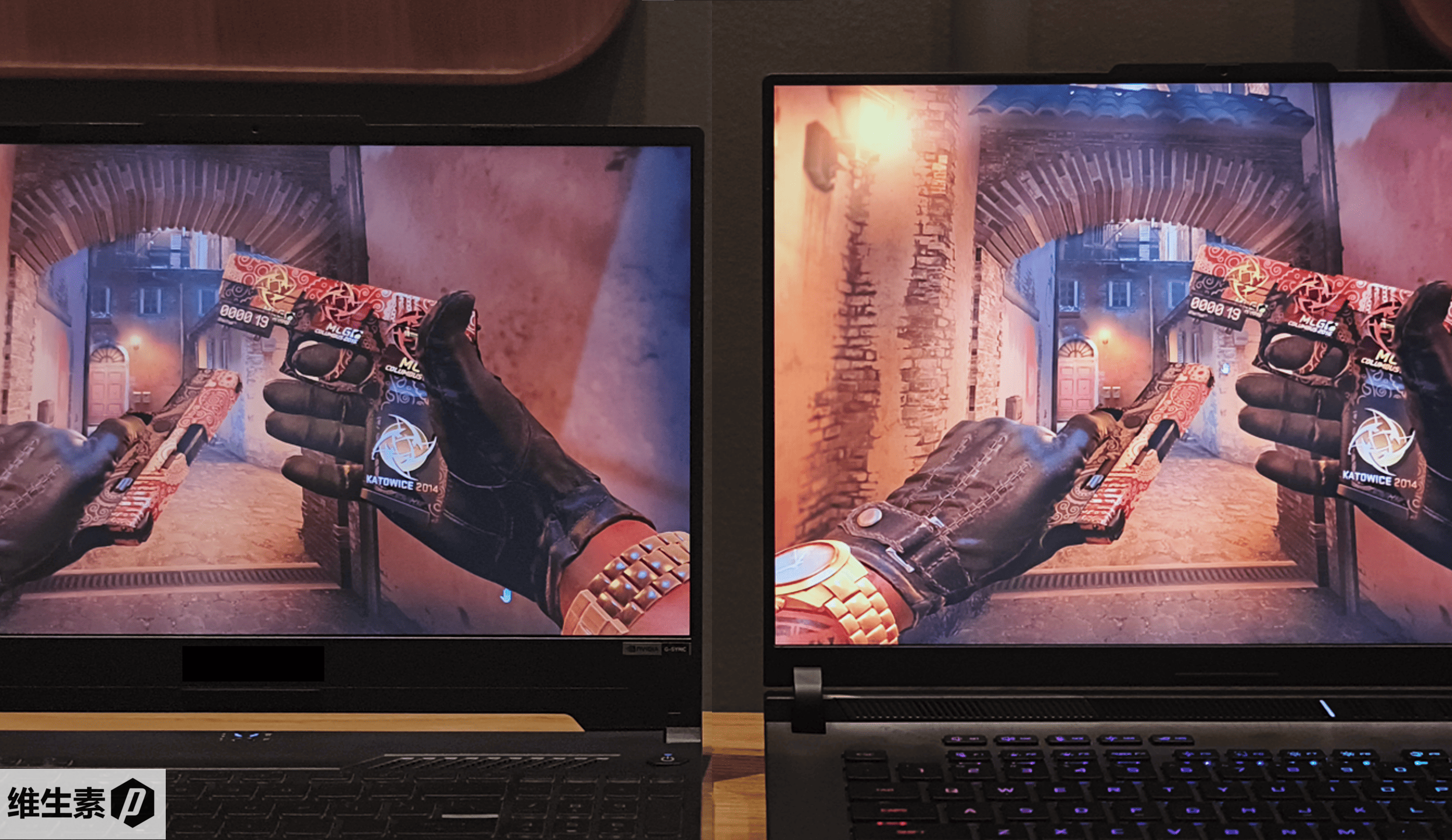 此处展示两台不同的笔记本,在没有反光的情况下,两者画面表现都是正常的。