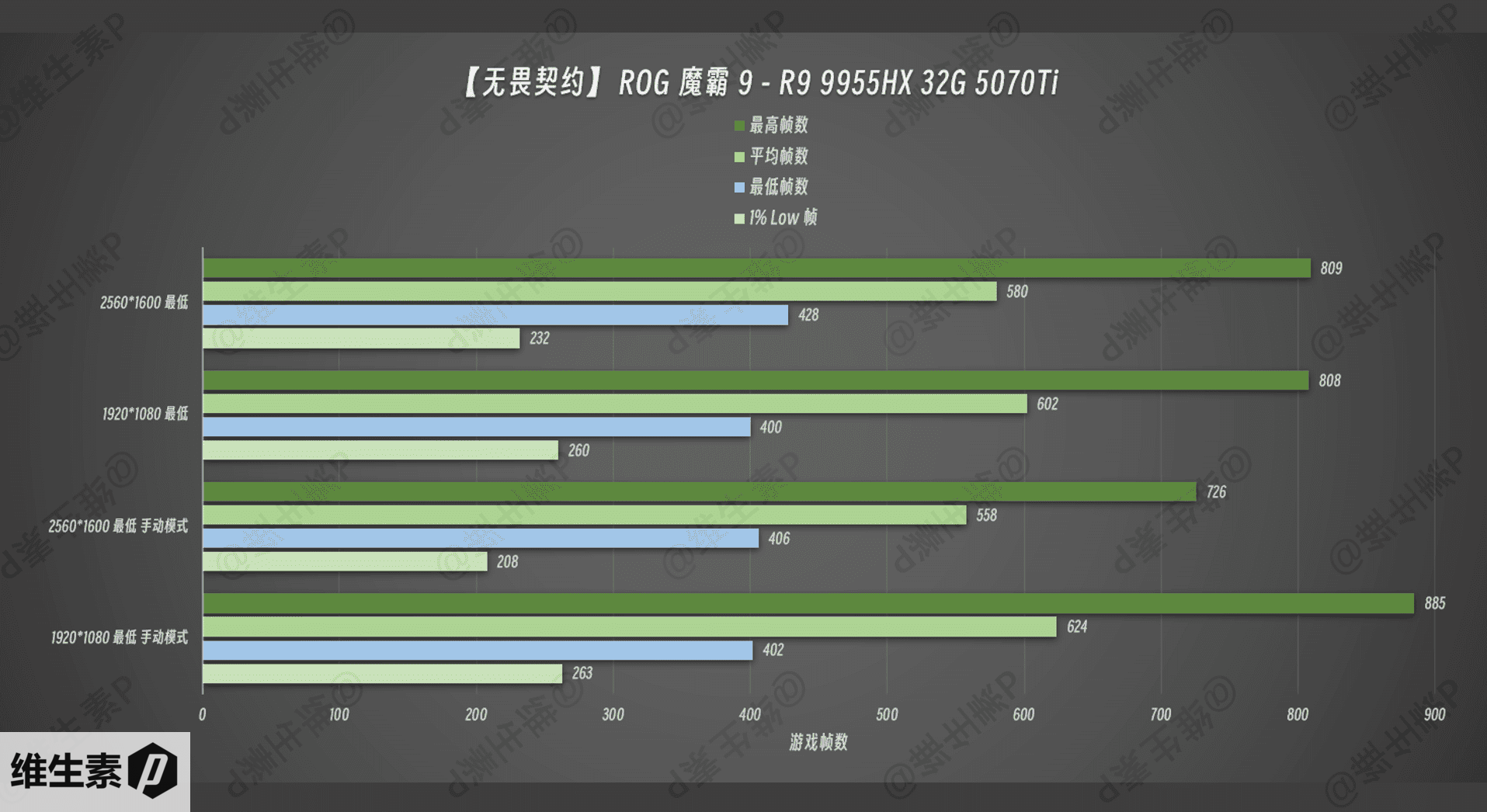 网游无畏契约是目前超爆火的游戏,ROG 魔霸9 这个帧数实在是太高,会影响柱状图比例,所以单独抽出来做一个图。