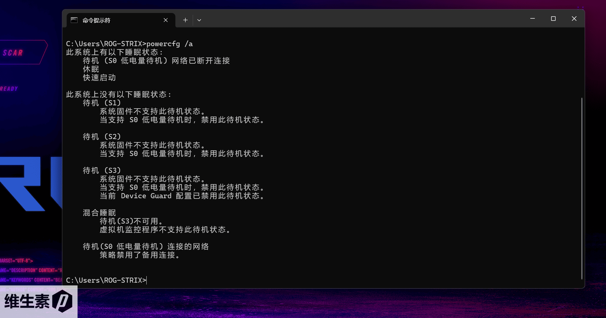 ROG 魔霸 9 只有 S0 待机,休眠,以及快速启动的状态,而且 ROG 在控制台内有一个设置休眠的功能,打开之后如果你的电脑长时间静置,他就会自动进入近似关机但一启动就能恢复原状的休眠状态。