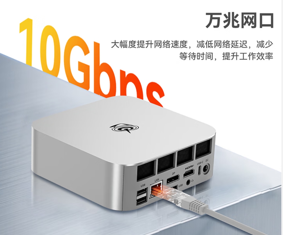 零刻的 SER9 系列迷你主机设计、做工、散热都不错:简约金属机身,内置VC均热板,内部风道可以内存和SSD 散热。处理器 R7 H 255 即 R7 8745H 改名,8核 CPU + 12CU 核显,适合主流办公场景,《英雄联盟》这类网游也能流畅运行。新出的这款 Max 型号把 2.5G 网口升级到万兆网口,适合家里有千兆以上宽带的用户。