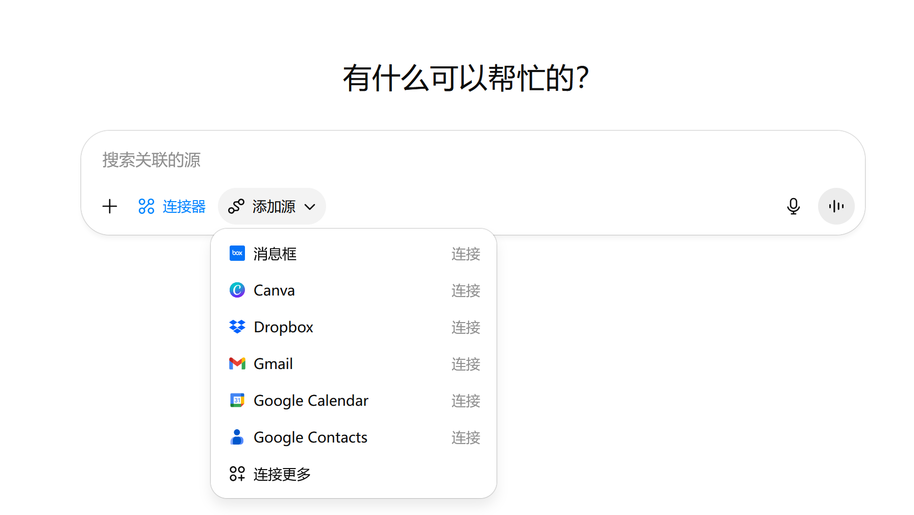 而值得注意的是,虽然ChatGPT在打造超级应用,但依然保持了美国SaaS上一个版本的优势——互联互通,并没有走向中国移动互联网“不联不通”“各自为营”的局面。通过连接器,依然可以链接Gmail、日历、Dropbox等其他产品。