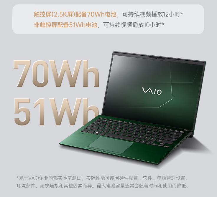 当然,如果你买 70 Wh 版本的 VAIO SX14-R,这个比 51 Wh 多了 37%,续航显著会增加。