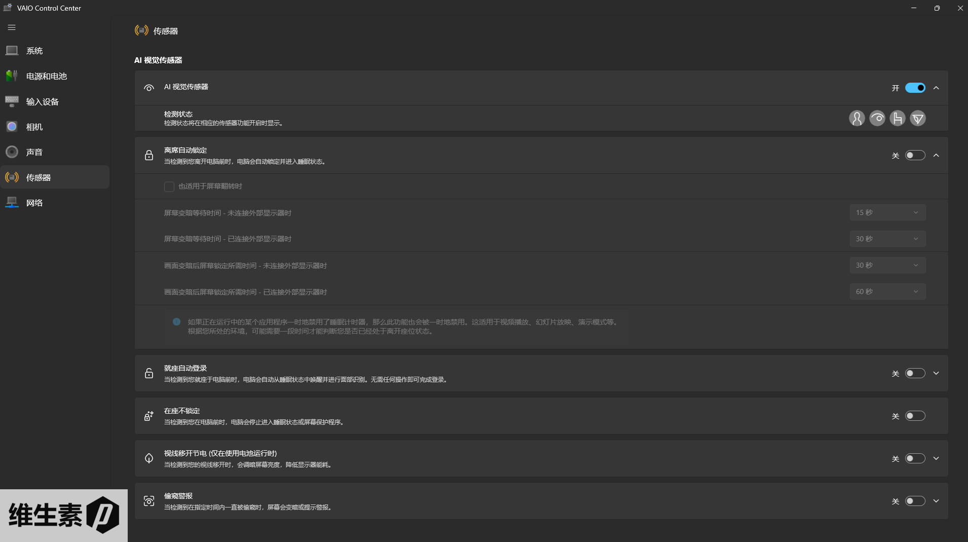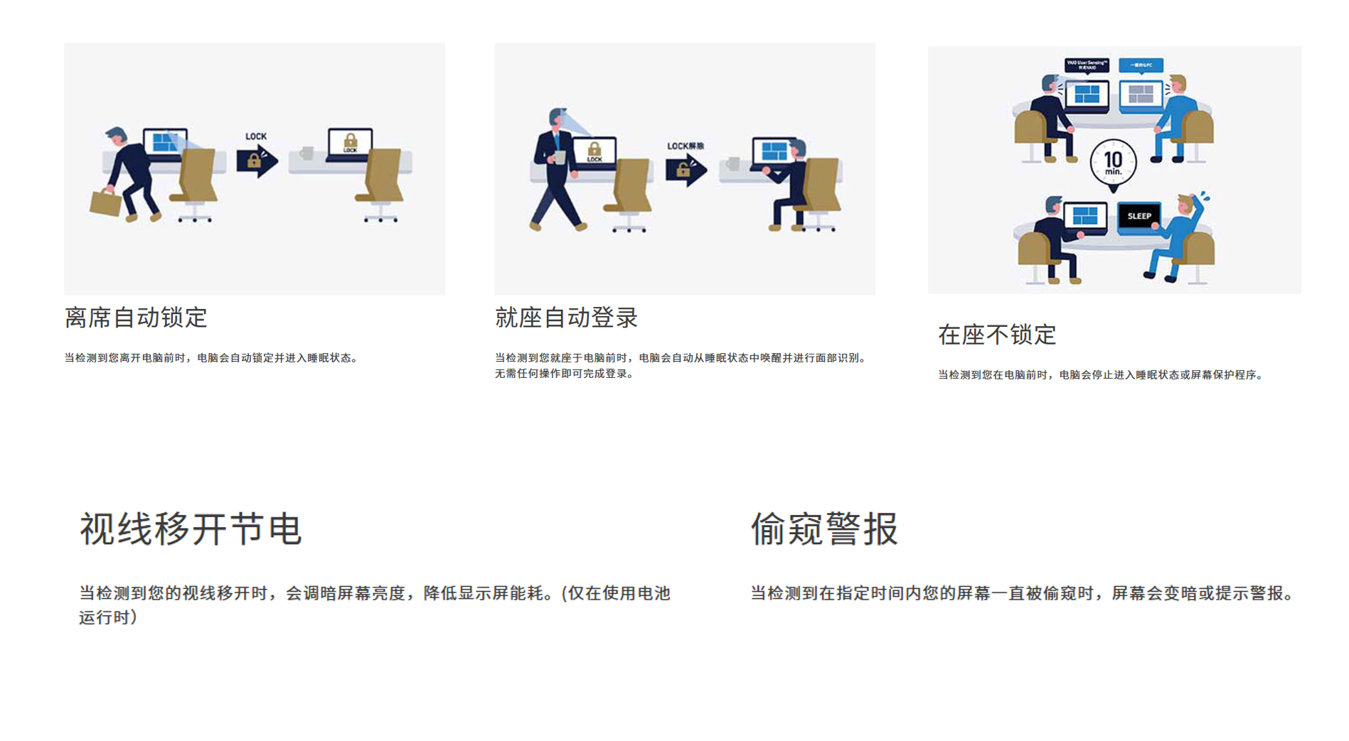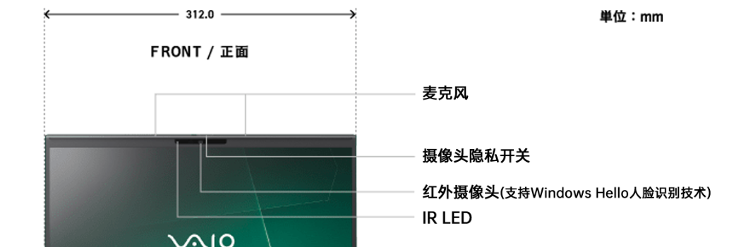 支持 Windows Hello 人脸识别解锁,并且额外通过 VAIO User Sensing 做了一些安全功能。