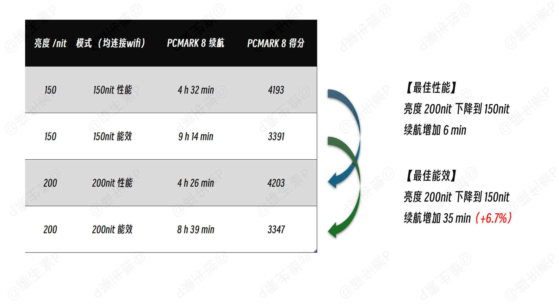 不过在国内的办公场景下,有可能负载是比测试软件的 PCMARK 8 更重的,那么续航可能就接近性能模式的情况了,所以具体情况还得具体分析,尤其是国内某些软件做的非常臃肿,也可能是耗电元凶。