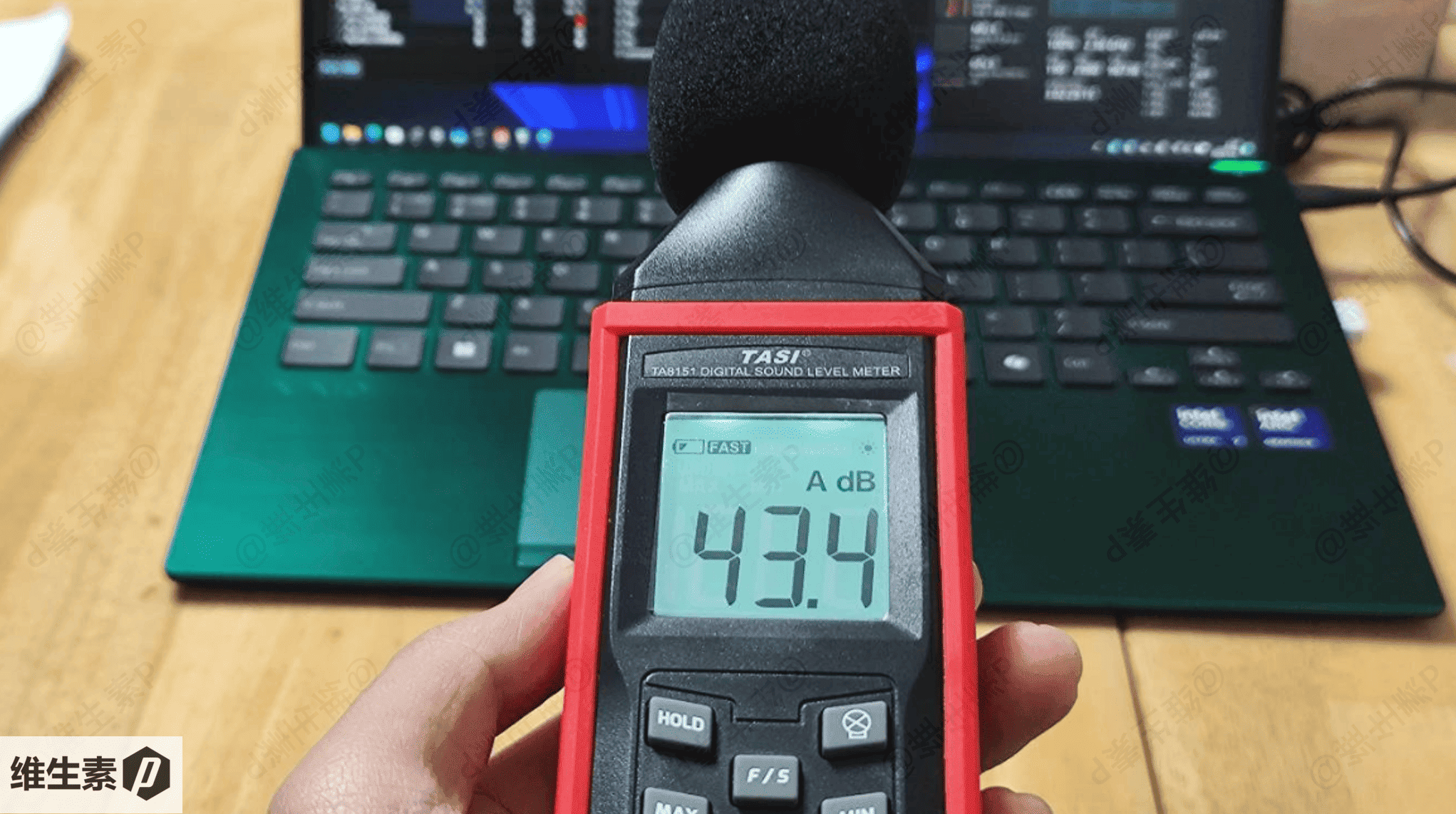 此时的人位噪音大约为 43.4 分贝,属于有一些风扇噪音感知,不过不算特别大声。