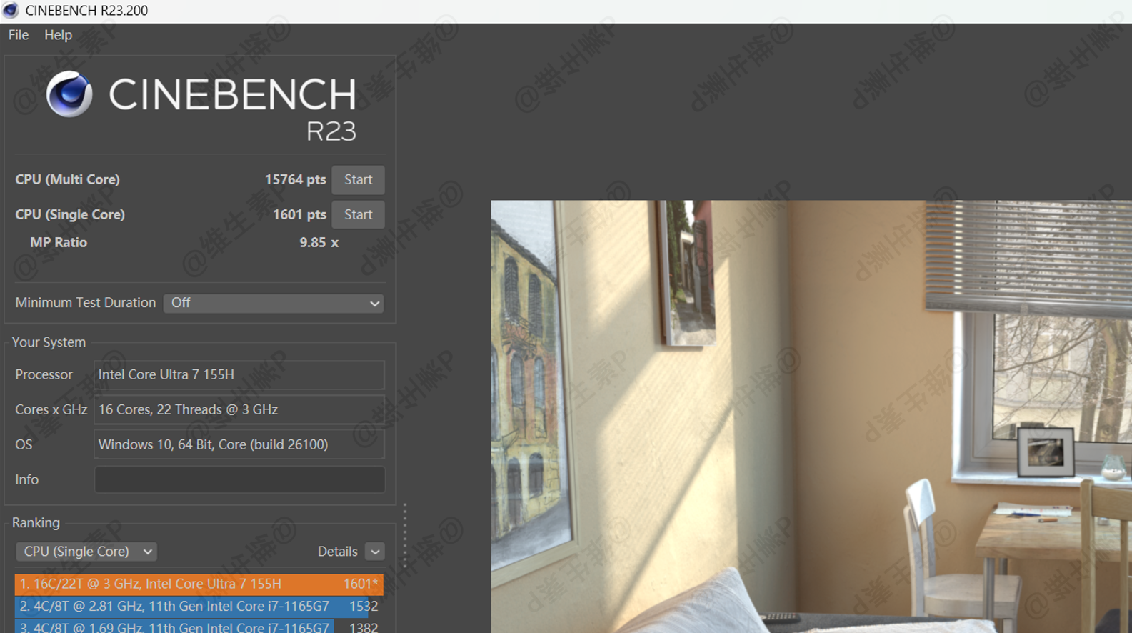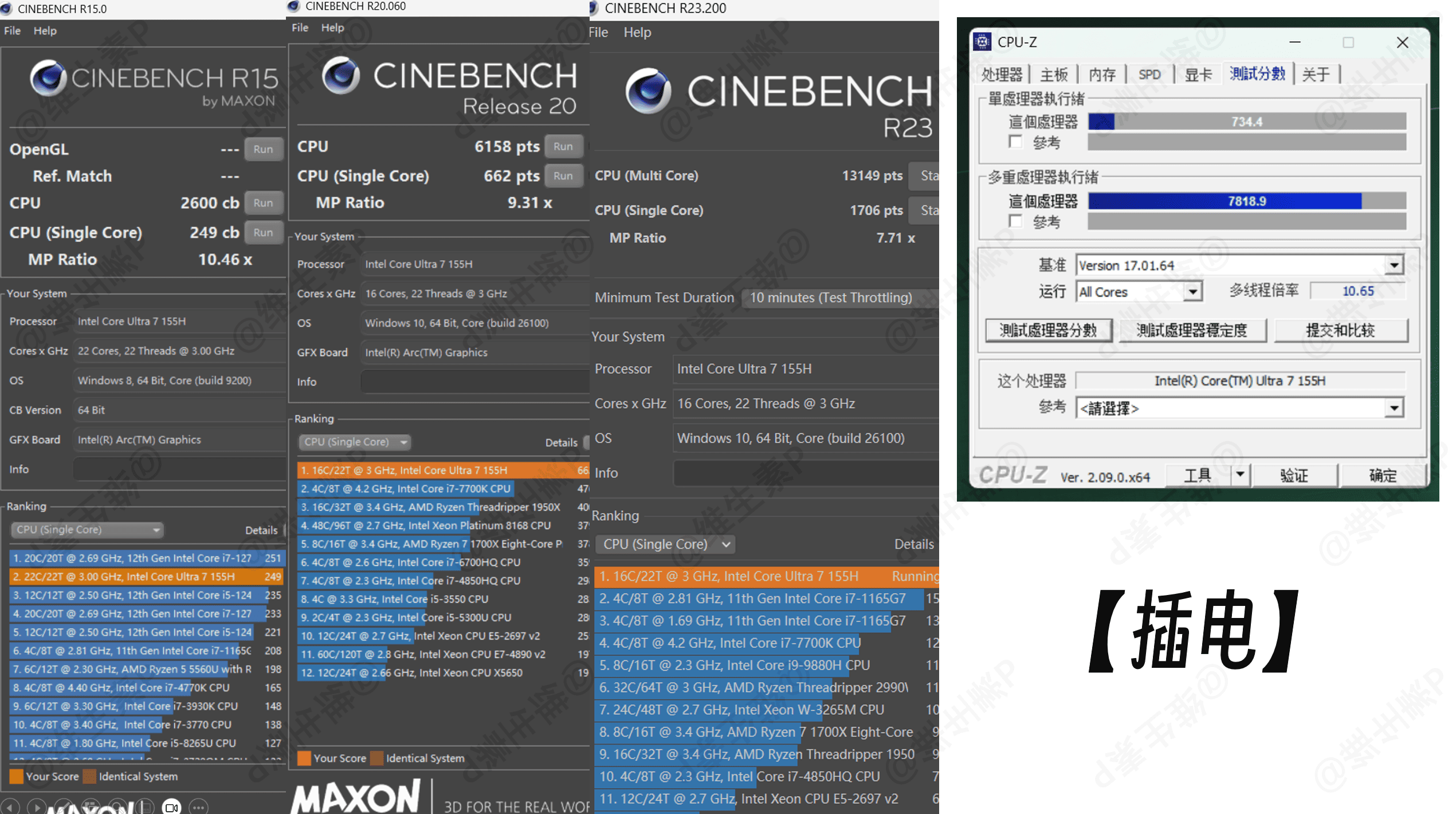 R23 10分钟模式,横评对比的多线程跑分如下: