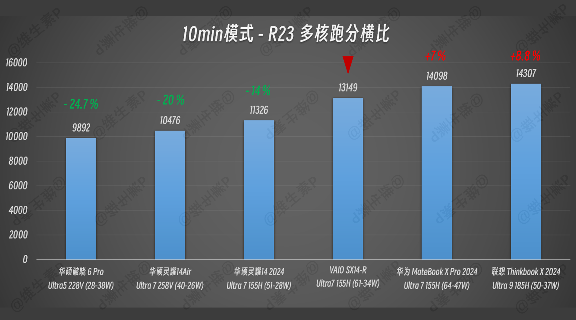 虽然 VAIO SX14-R 和 2024 当红超轻量领域里的顶流性能,还是有一点点差距,但是整体性能在轻薄本里并不差。作为办公本来说,比传统质感轻薄本还是要强一些,而且在维持了保守性能续航还不错的情况下,能有比 Ultra 200V Lunar Lake 更好的多线程跑分性能。