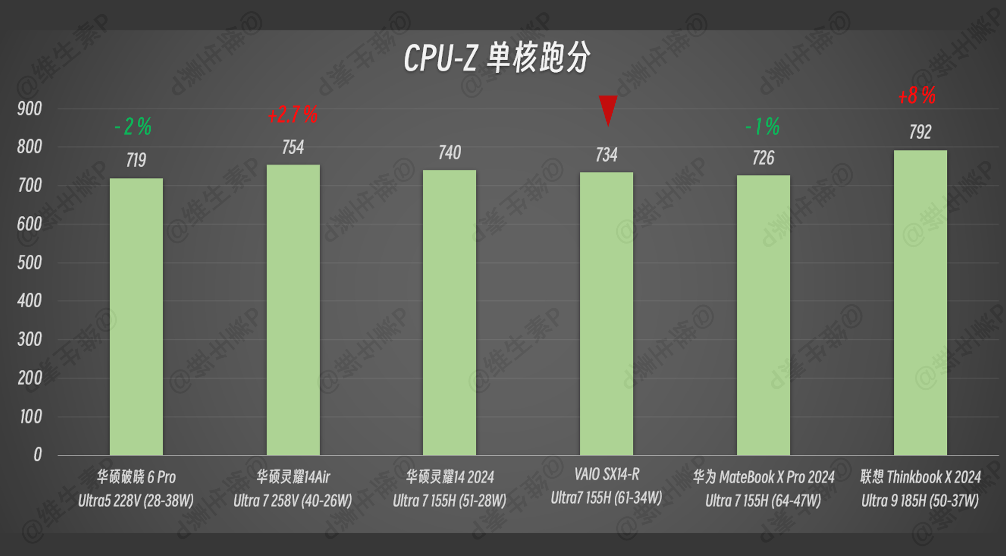 CPUZ 横评对比的单线程跑分如下: