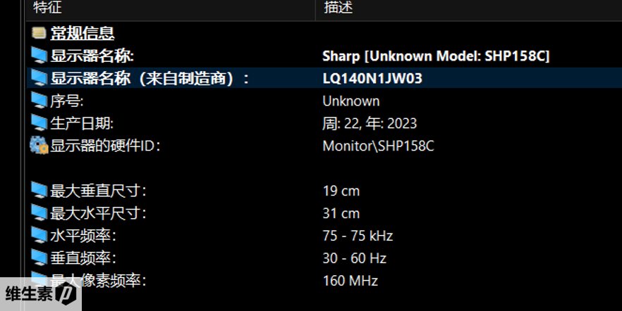 屏幕面板来自夏普,分辨率是 1920 × 1200,60Hz,属于办公专属屏了,8 bit 色深。