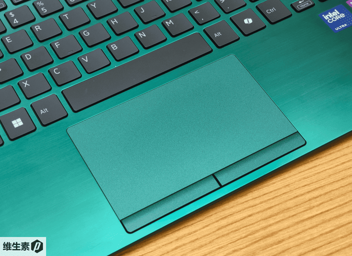 金属 C 面 在不同光照下会呈现出不同的绿色,而且连触摸板都特意做了色漆,整体的颜色搭配浑然一体。
