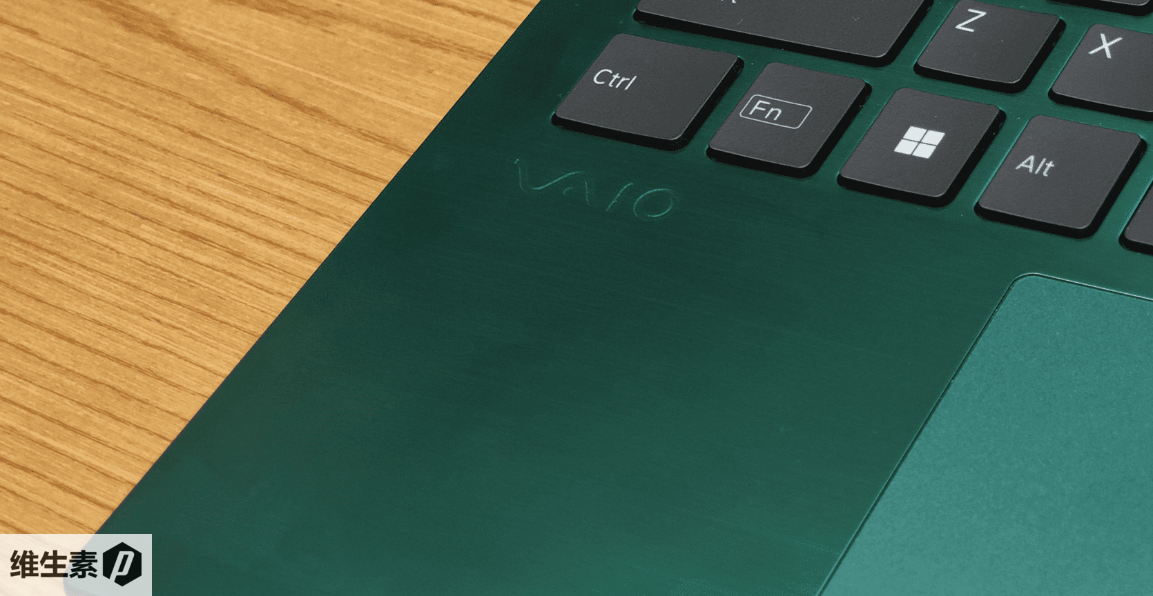在左侧 Ctrl 键下,有一个小小的 VAIO 印记,在翠色绿影中,默默低调的藏在这里。