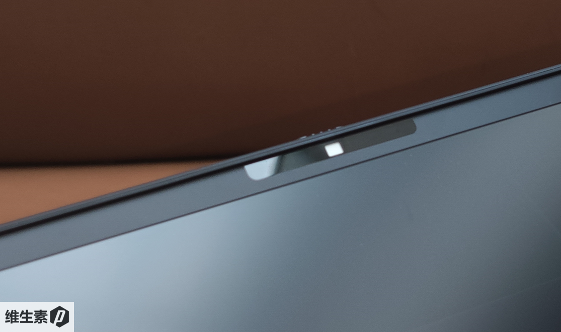 顶部是摄像头和相关传感器,前置摄像头带有物理的隐私防窥锁,可以通过拨动开关,手动控制摄像头的物理屏蔽罩。